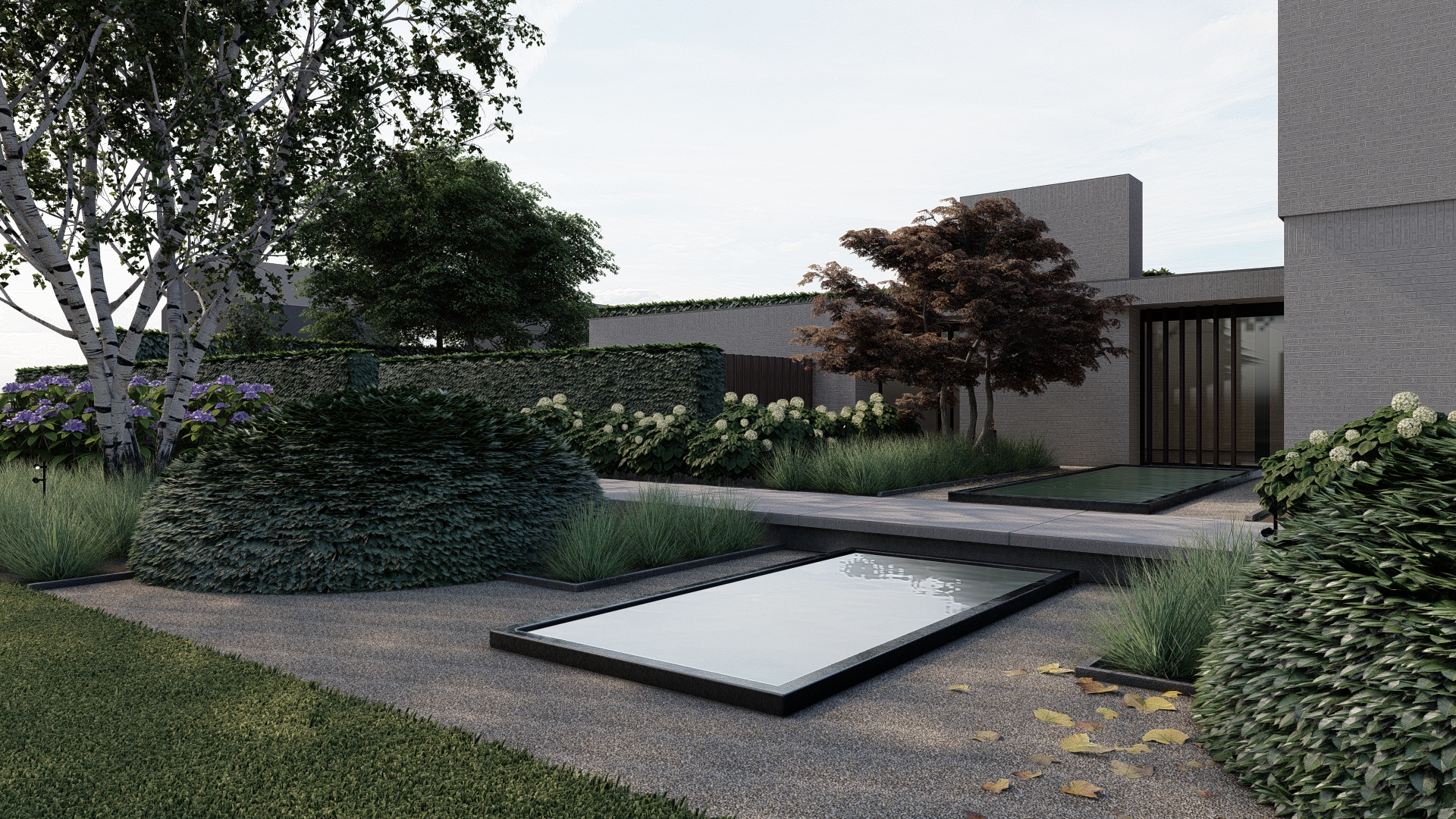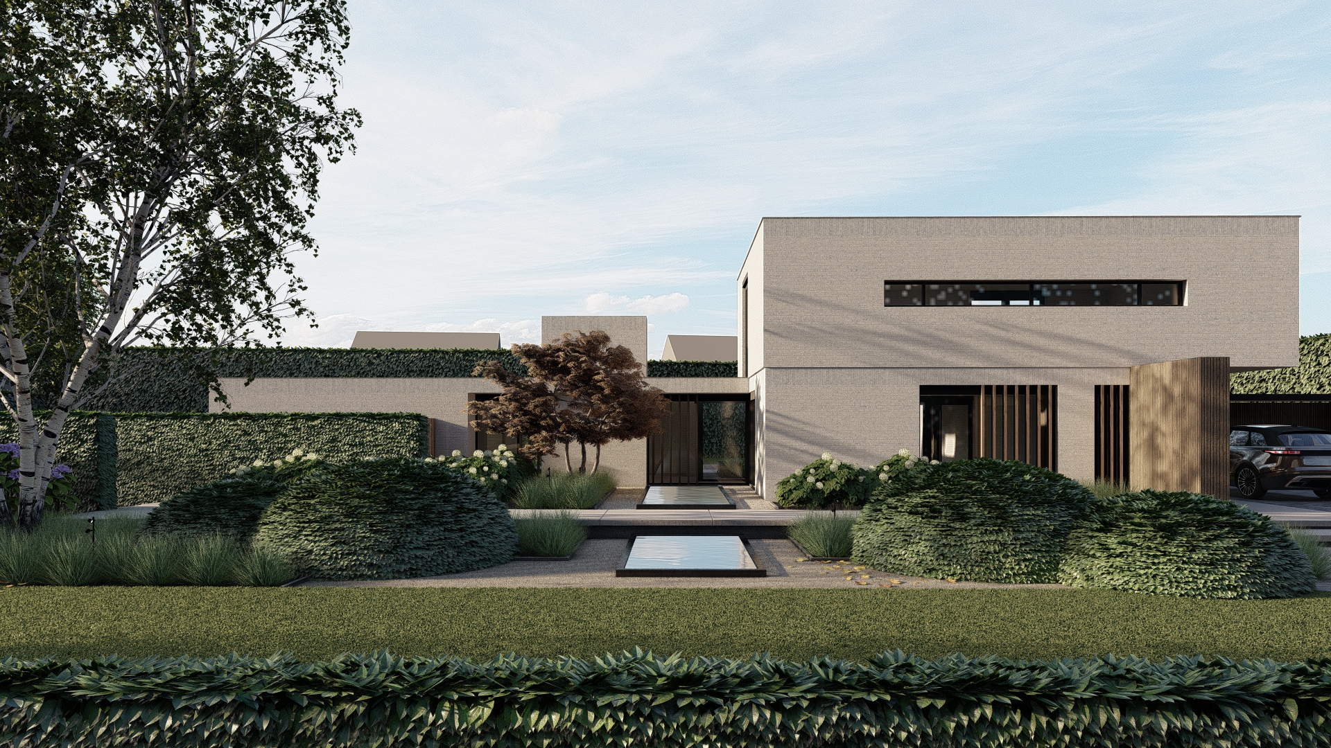 Een evenwichtige, moderne villatuin waarin architectuur, landschap en gebruik samenkomen.